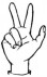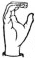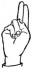 На ћирилици написано РУМЕНА СОКОЛОВИЋ састоји се из 15 слова [?]. Исписано ћириличном једноручном азбуком за глувонеме: